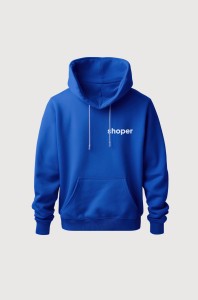 Bluza unisex o luźnym kroju w kilku kolorach: firmowy Shoper blue, pomarańczowy, złamana biel, fioletowy i zielony.