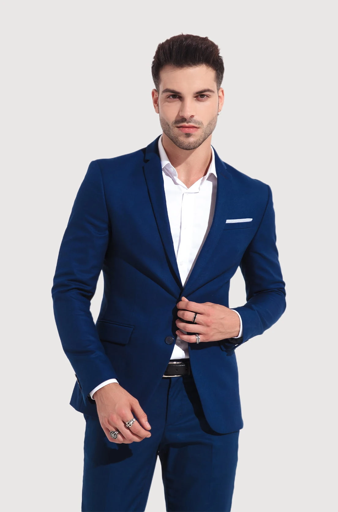Nasza granatowa marynarka to wyjątkowy element męskiej garderoby, który łączy w sobie klasykę, elegancję i dobry styl.