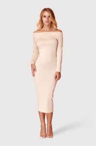 Palermo to ołówkowa sukienka o długości za kolano. Biszkoptowy kolor sukienki to delikatny odcień beżu z nutą jasnego brązu, co czyni ją łatwo zestawialną z innymi ubraniami i dodatkami. Prążkowana dzianina z bawełny i dopasowany fason sprawiają, że sukienka doskonale podkreśla figurę. Dekolt w łódkę jest subtelny i eksponuje szyję. Stylizację możesz dopełnić złotym łańcuszkiem lub wisiorkiem.